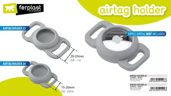 Grijze siliconen Airtag houder voor hondenhalsband.